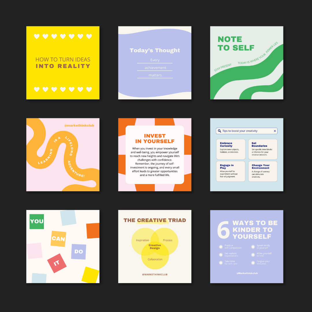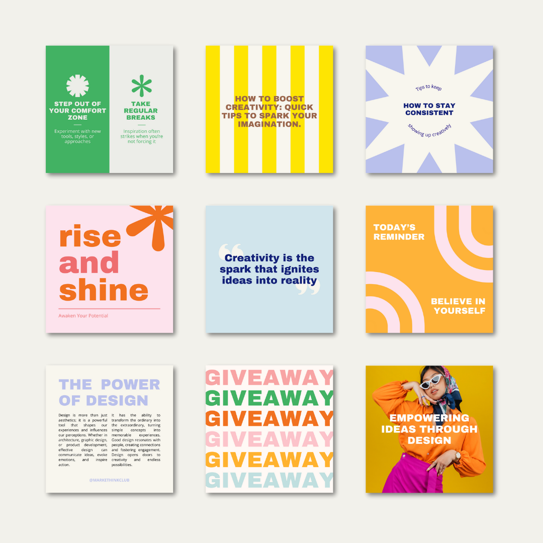 Con diseños vibrantes y dinámicos, este pack te ayuda a crear publicaciones impactantes en minutos, mejorando tu presencia en redes sociales sin importar tu nicho. Los templates están diseñados para usarse exclusivamente en Canva